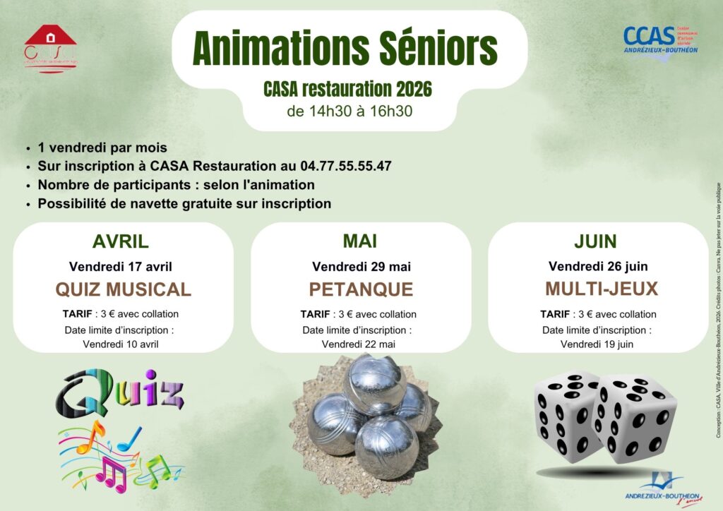 Le Centre Communal d’Action Sociale (CCAS) vous propose un espace de restauration situé au rez de chaussée de CASA, du lundi au vendredi à partir de 11 h 45.