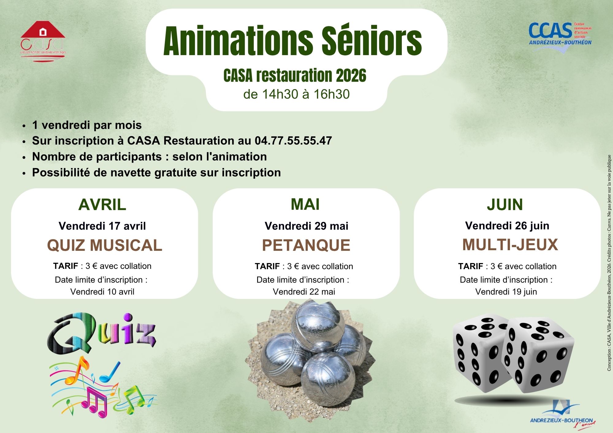 Les repas savent aussi s’animer ! Durant toute l’année, CASA vous invite à des moments festifs et animés.